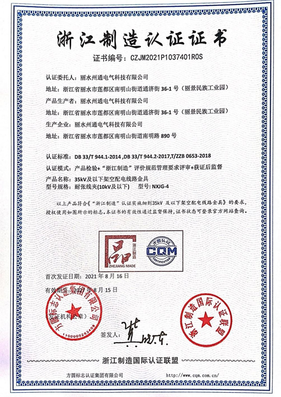 Zhejiang Manufacturing Certificate