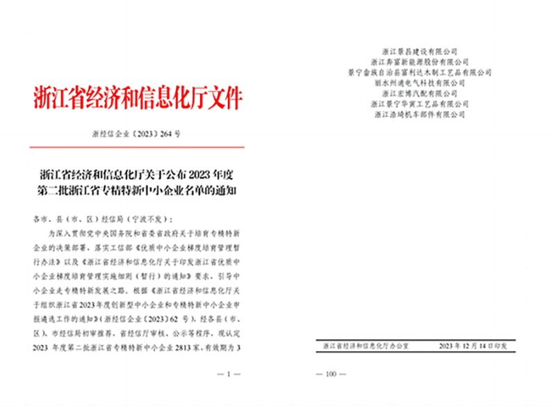 近日,浙江省經(jīng)濟(jì)和信息化廳公布2023年度第二批浙江省專精特新中小企業(yè)名單,麗水州通電氣科技有限公司、浙江宏博汽配有限公司等7家企業(yè)榜上有名。至此,2023年度我縣累計(jì)培育省級專精特新中小企業(yè)9家,總數(shù)達(dá)13家,增量實(shí)現(xiàn)翻番。